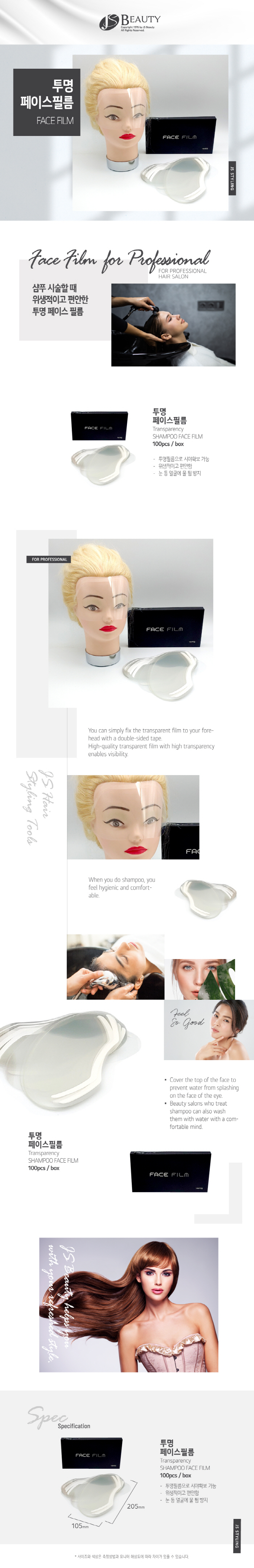 | 응용방법 1.염색을 시술한 때 고객의 목 사이즈에 맞게 페이스필름을 잘라 붙이고 모발끝을 도포하면 목에 염색약이 묻어 얼룩이 생기는 것을 방지할 수 있어 고객에게 염색시술에 발생되는 얼룩에 대한 지저분한 이미지를 없애고 깔끔하게 시술이 진행되는 이미지를 전달해 줄수 있습니다. 2.전체적인 호일링이 필요할 시에 일일이 호일을 대고 핀셋으로 고정할 필요없이 앞, 뒤의 페이스 필름을 받침으로 사용하여 호일을 올려 고정함으로 인해 호일의 양을 줄여 간편하게 작업할 수 있으며 무게감을 줄여 고객에게 가벼움을 줄 수 있습니다. 사용방법 1.고객의 페이스라인을 따라 물기를 제거합니다. 2.페이스라인캡 1장을 꺼내 접착테이프의 겉지를 제거합니다. 3.제품의 접착면을 고객의 페이스라인을 따라 붙여줍니다. |
