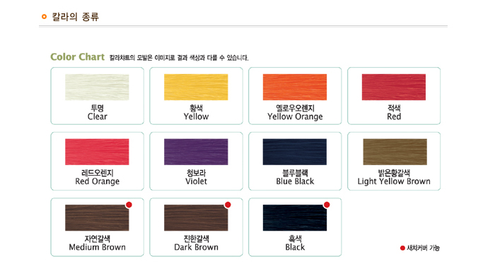 | 1.모발 샴푸 후 타올드라이를 합니다. 2.가초아 헤어매니큐어를 도포 합니다. 3.비닐캡을 쓰고 자연방치하여 30분정도 방치하여 줍니다. 4.칼라 확인 후 (색이 엷을 경우 재도포한후 캡을 씌워 5~10분간 방치)샴푸를 합니다. 5.드라이로 건조후 원하는 스타일을 연출합니다. |