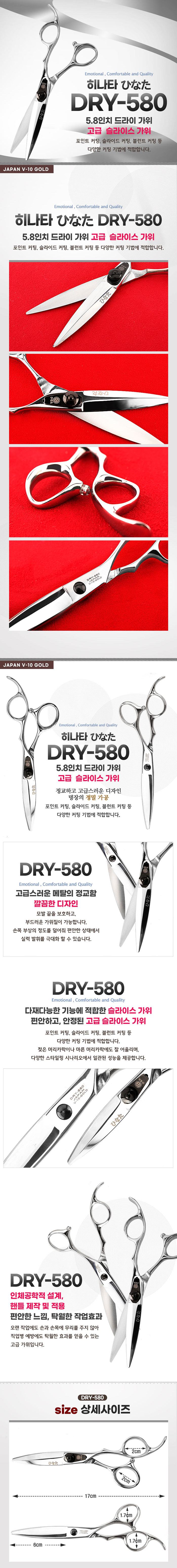 | [5.8인치 드라이/슬라이스 가위] 헤어 디자이너의 텍크니컬한 섬세한 커트와 질감 능력이 뛰어난 드라이 슬라이스 가위 입니다. | |