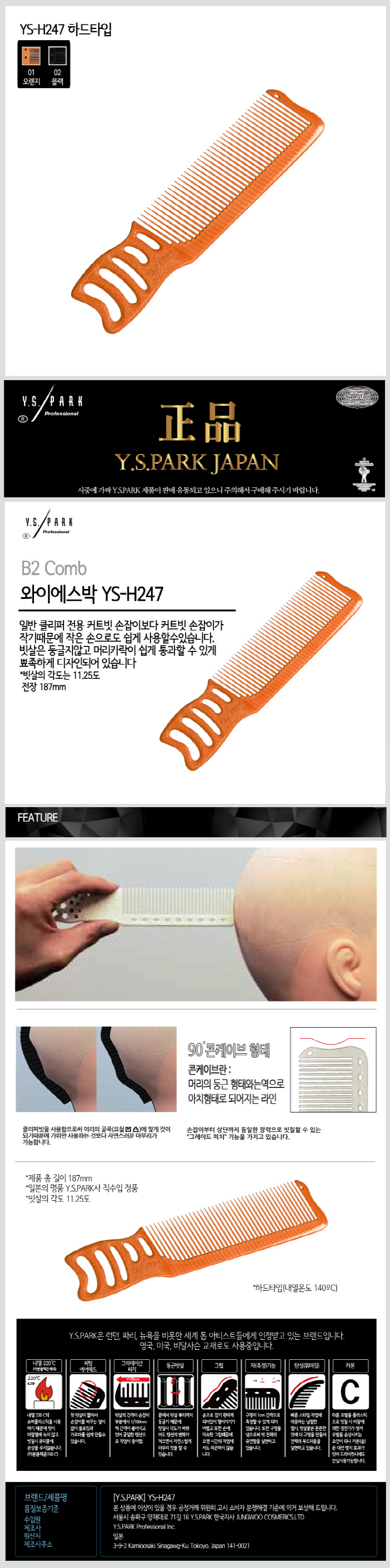 | [Y.S.PARK] [Y.S.PARK] 와이에스박 손잡이형 맘보 콤비 커트빗 (MAMBO Combs) YS-H247 (종합 선택) | |
