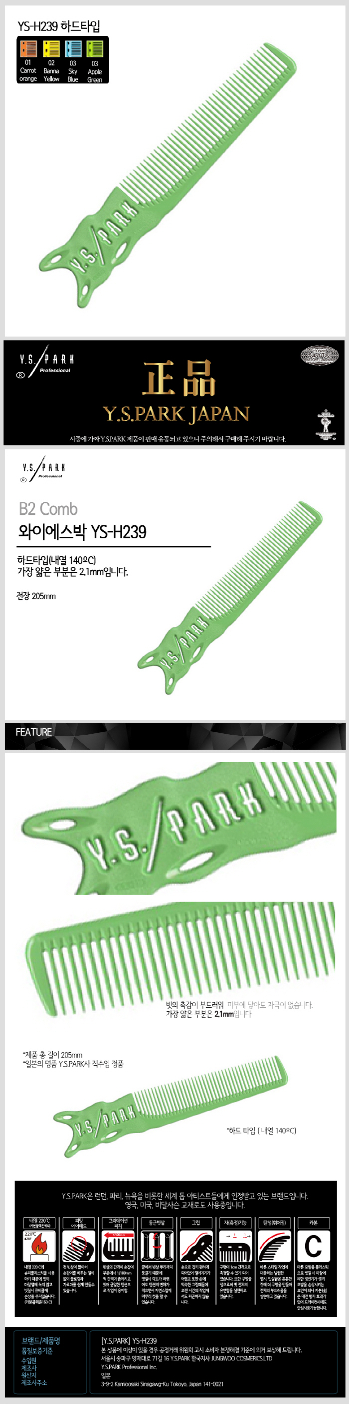 | [Y.S.PARK] [Y.S.PARK] 와이에스박 손잡이형 커트빗 (B2 Combs) YS-H239 (종합 선택) | |