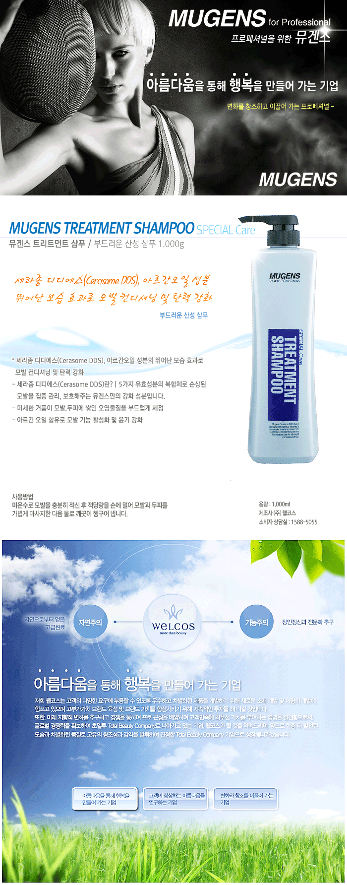 | [웰코스] [웰코스] 뮤겐스 리치 모이스쳐 트리트먼트 샴푸(산성 샴푸) 1.000ml | |