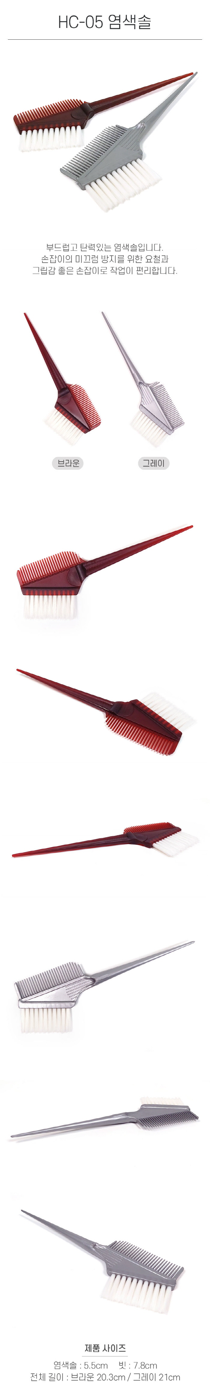 | [제품의 특징] - 전체 길이 : 21cm / 염색솔 5.5cm / 빗 7.8cm - 색상 : 브라운, 그레이 |