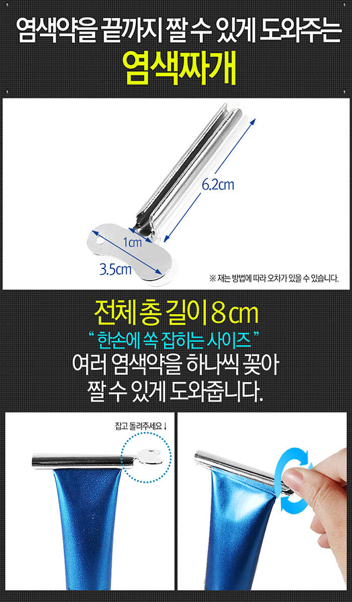 | 염색약을 편리하게 끝까지 짤수 있다 여러 염색약에 하나씩 꽂아서 사용할수 있다 |