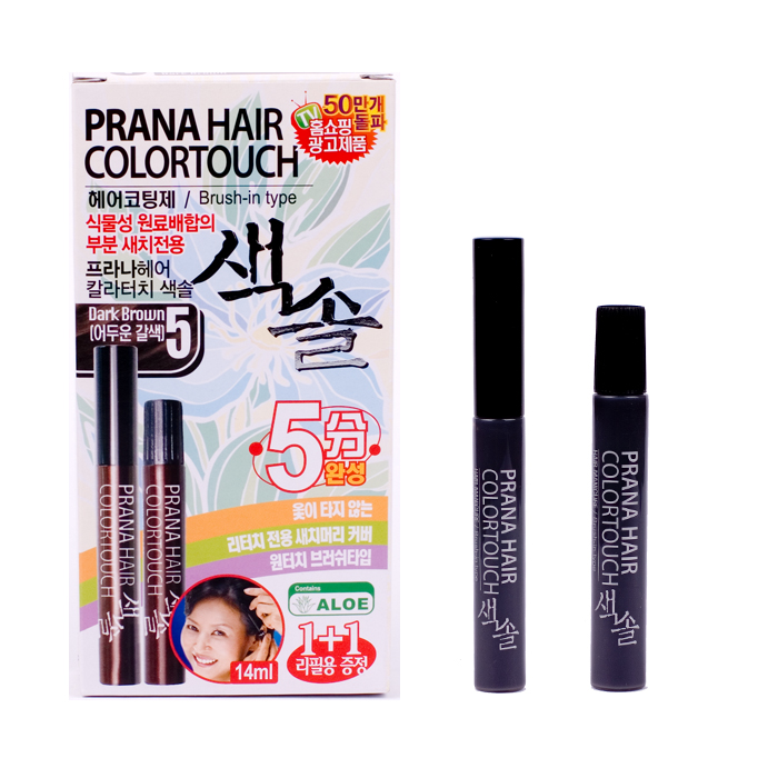| 제품의 특징 - 옻이 타지 않는 리터치전용 새치머리 커버 - 프라나 헤어칼라터치 색솔은 편리한 ONE-STEP방식 브러쉬타입의 새치머리 코팅제로 브러쉬를 사용하여 새치머리가 있는 곳에 새치가 안보일때까지 솔질을 하면 1회 사용으로 오랫동안 코팅이 유지되는 新개념의 새치커버전용 헤어코팅제입니다. |