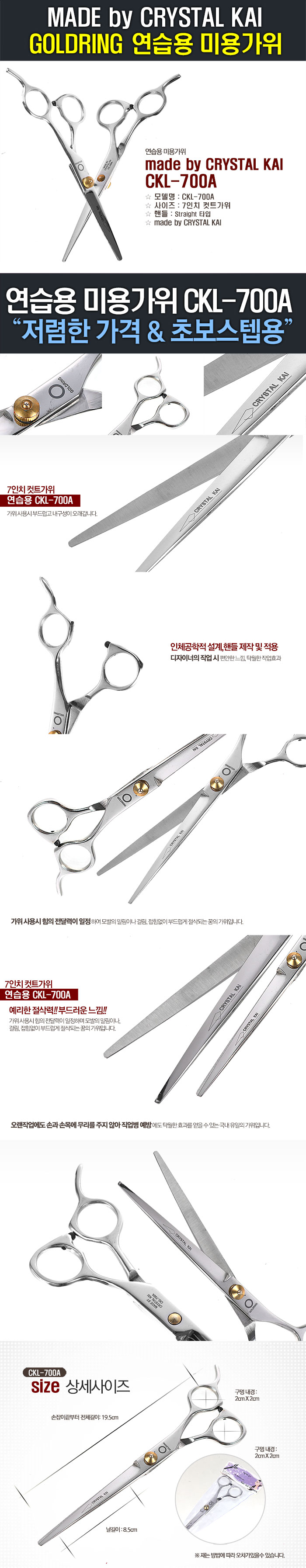 [씨제이비] [일반가위] 크리스탈카이 골드링 7인치 장가위 CKL-700A