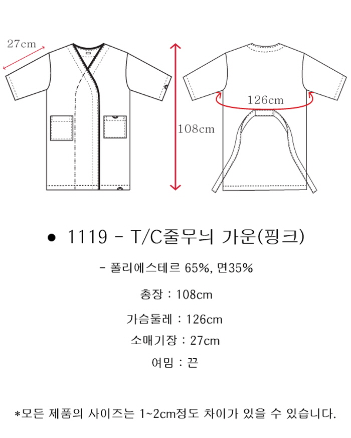 | [요들] [요들가운] 요들 T/C 줄무늬 가운(반팔) 1119 핑크 | |