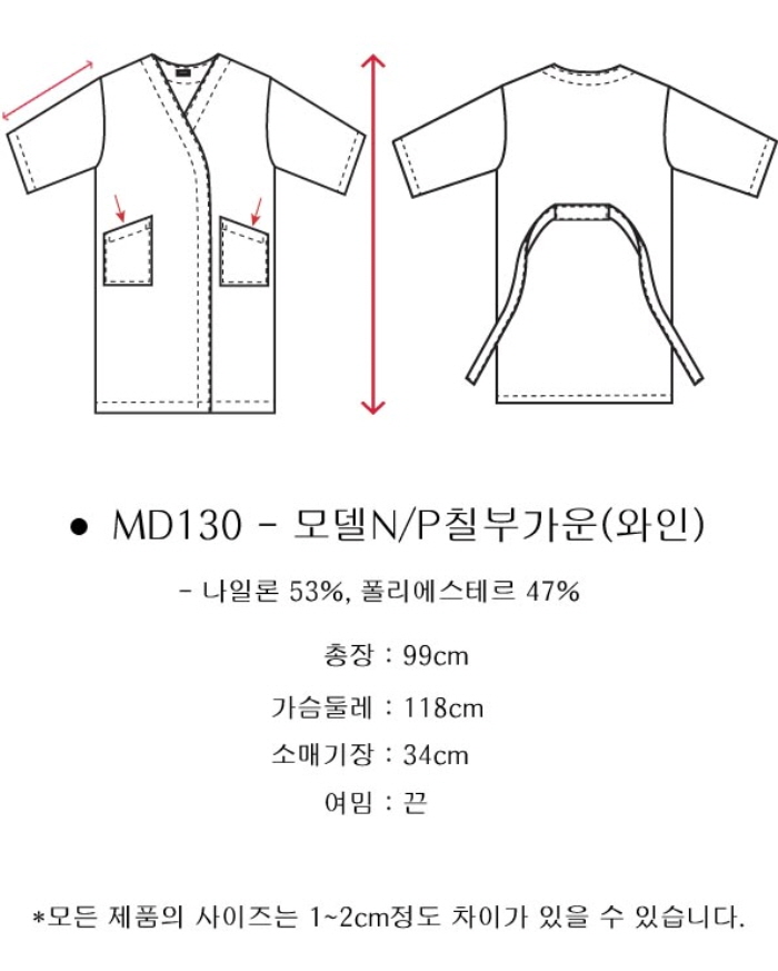 | [요들] [요들가운] 요들 모델 N/P 칠부가운 MD-130 와인 | |