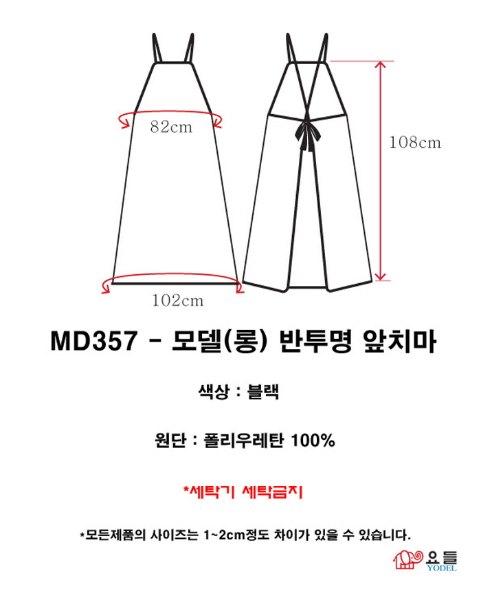 | [요들] [요들가운] 요들 모델(롱) 반투명 앞치마 MD-357 블랙 | |
