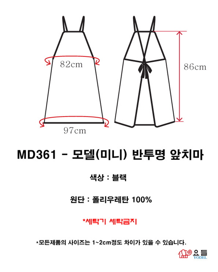 | [요들] [요들가운] 요들 모델(미니) 반투명 앞치마 MD-361 블랙 | |