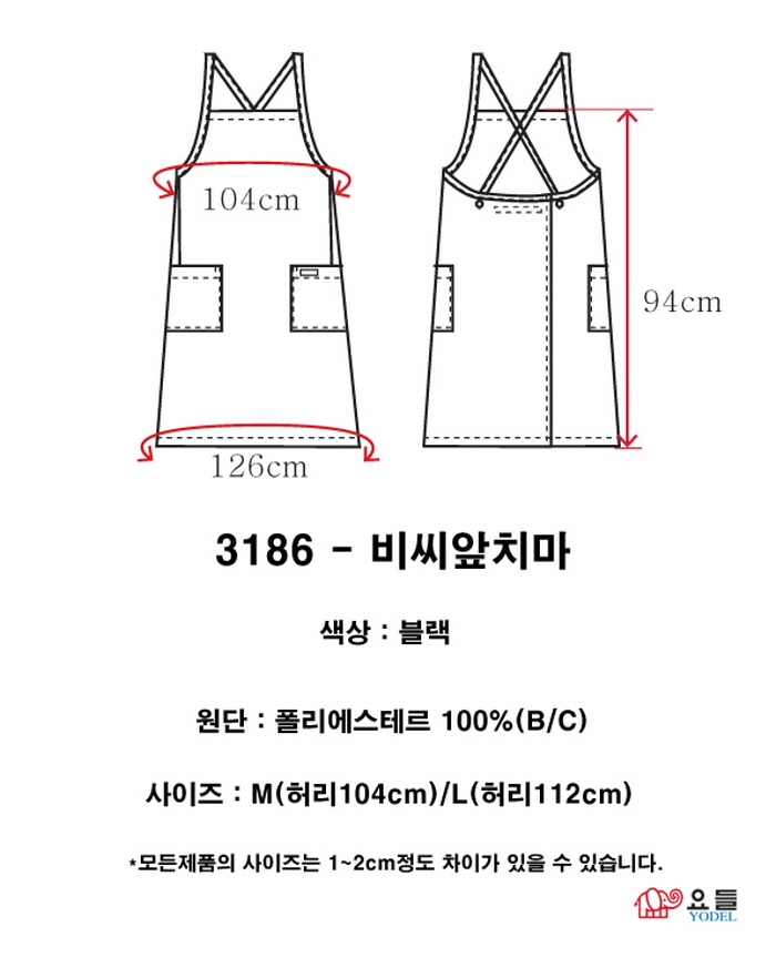 | [요들] [요들가운] 요들 비씨 앞치마 3186 블랙 | |