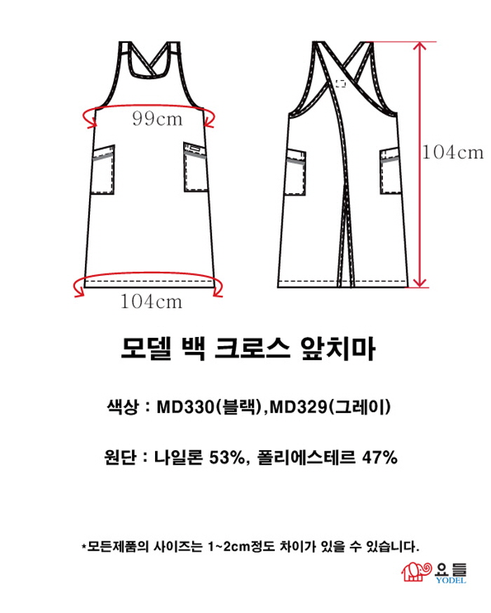 | [요들] [요들가운] 요들 모델 백크로스 앞치마 MD-330 블랙 | |