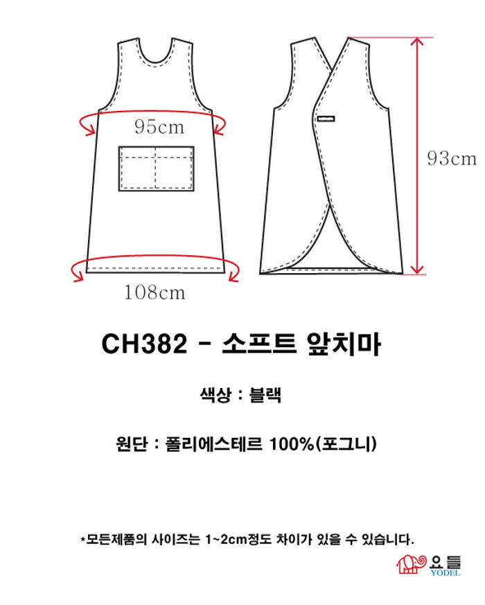 | [요들] [요들가운] 요들 소프트 앞치마 CH-382 블랙 | |