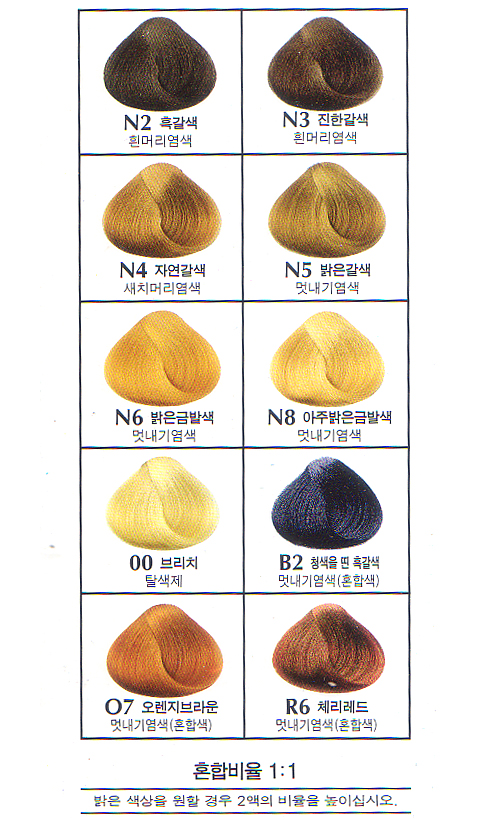 | 1.1제 튜브는 마개를 거꾸로 하여 구멍을 냅니다. 2.1제 크림을 염색볼에 짜내고 2제와 1:1 비율로 섞어 줍니다. 3.가르마를 나누고 1~1.5cm 간격으로 도포해 줍니다. 4.약 20~30분 방치 후(시간을 오래두면 더욱 선명한 칼라 연출) 5.미온수로 잘 헹군 후 2회 샴푸로 깨끗이 헹구어 내고 트리트먼트로 마무리해 줍니다. |
