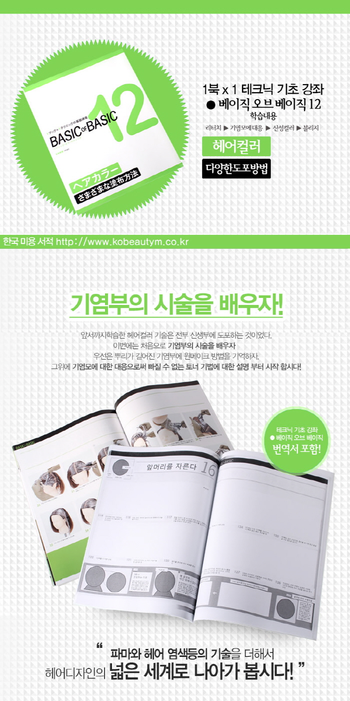 | [미용서적] [일본교재] 베이직 오브 베이직(헤어 컬러 다양한 도포방법) vol.12 (번역서포함) | |