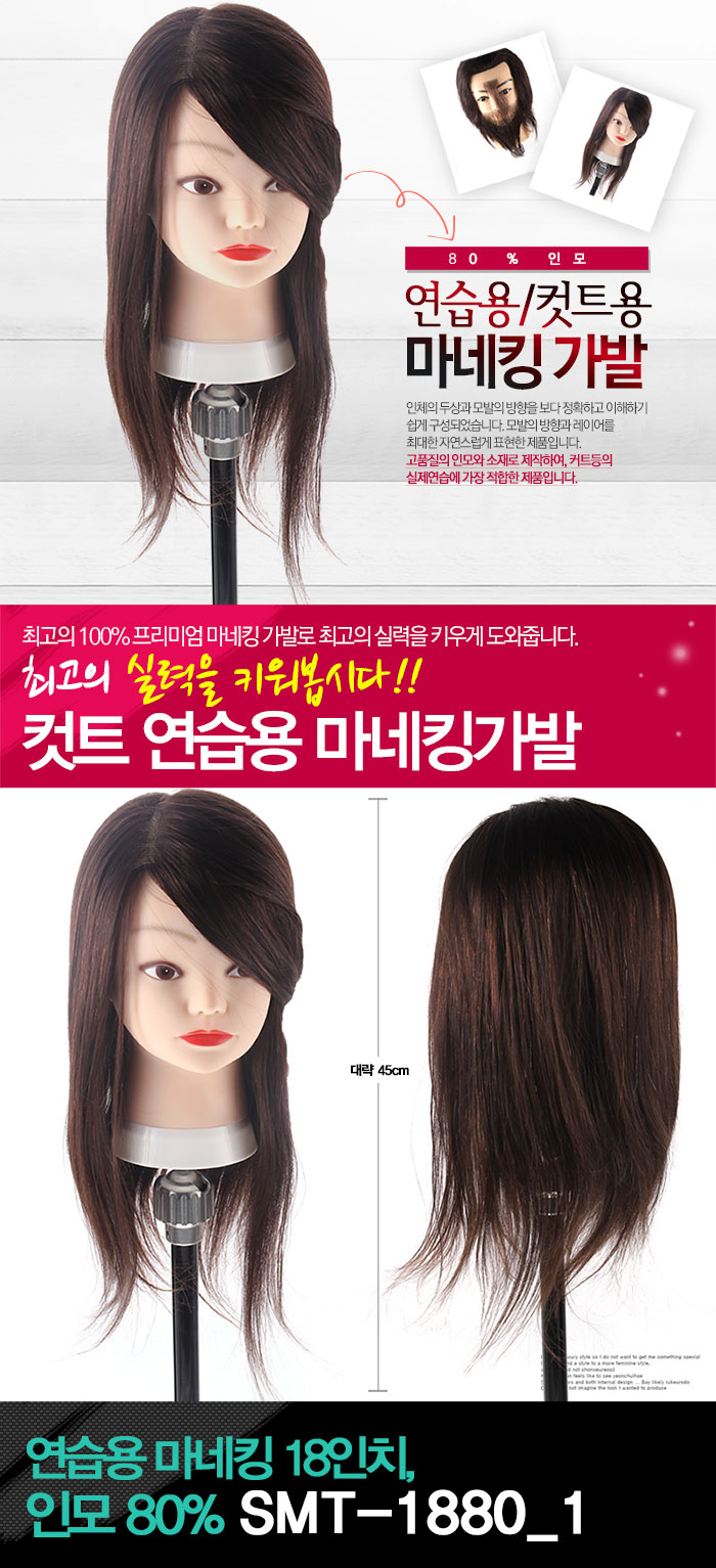 | [인모 80%/인조 20%] 커트 연습용/100도 이하 드라이기 가능 l 염색/펌/드라이 불가능 | |