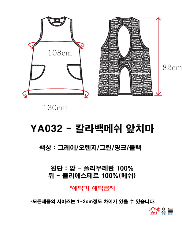 | [요들] [요들가운] 요들 칼라 백 메쉬앞치마 YA032 핑크 | |