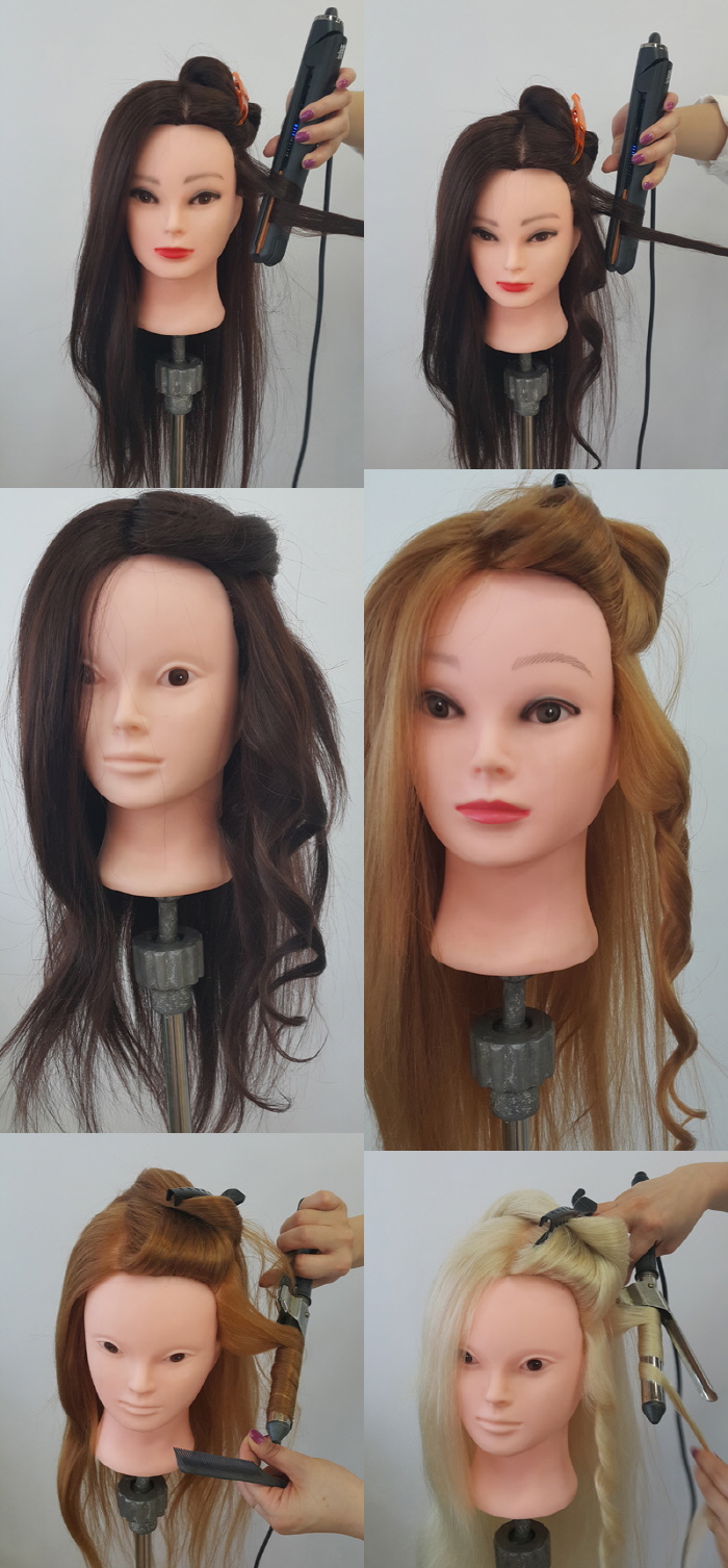 | 아이롱,드라이,업스타일등 스타일링, 커트 연습용 통가발 / 아이롱 열 120도 이하로 연습해야 됩니다. | |