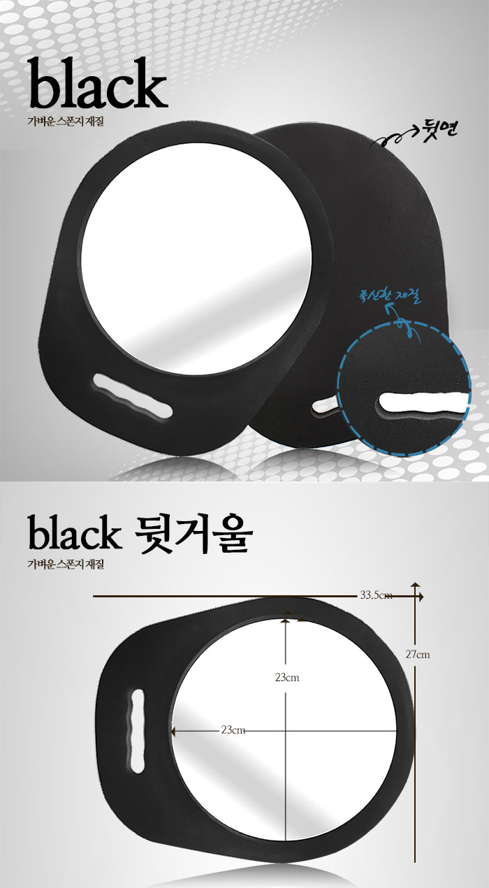 | [제품의특징] - 스폰지로 거울을 감싸고 있어서 쉽게 깨지지 않음 - 가볍고 세련된 디자인 |