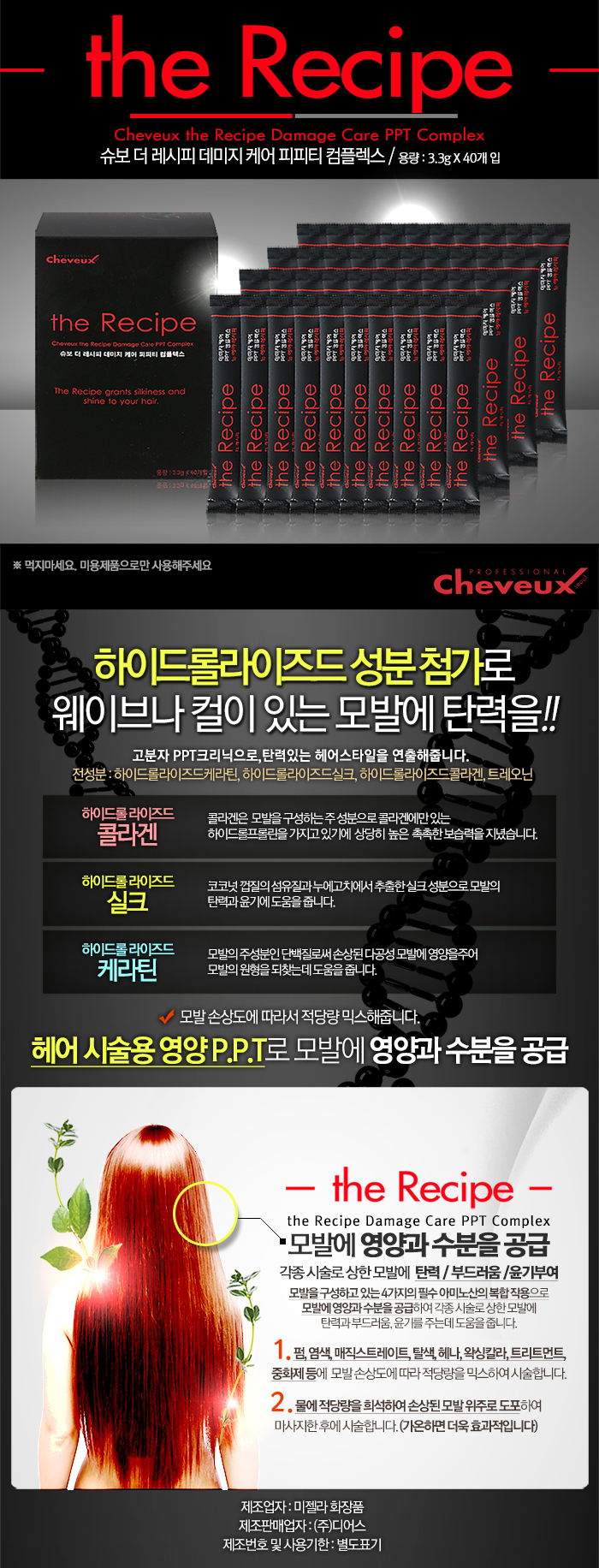 | [디어스] [디어스] 슈보 더 레시피 데미지 케어 피피티 컴플렉스(앰플) 3.3g 낱개1개 | |