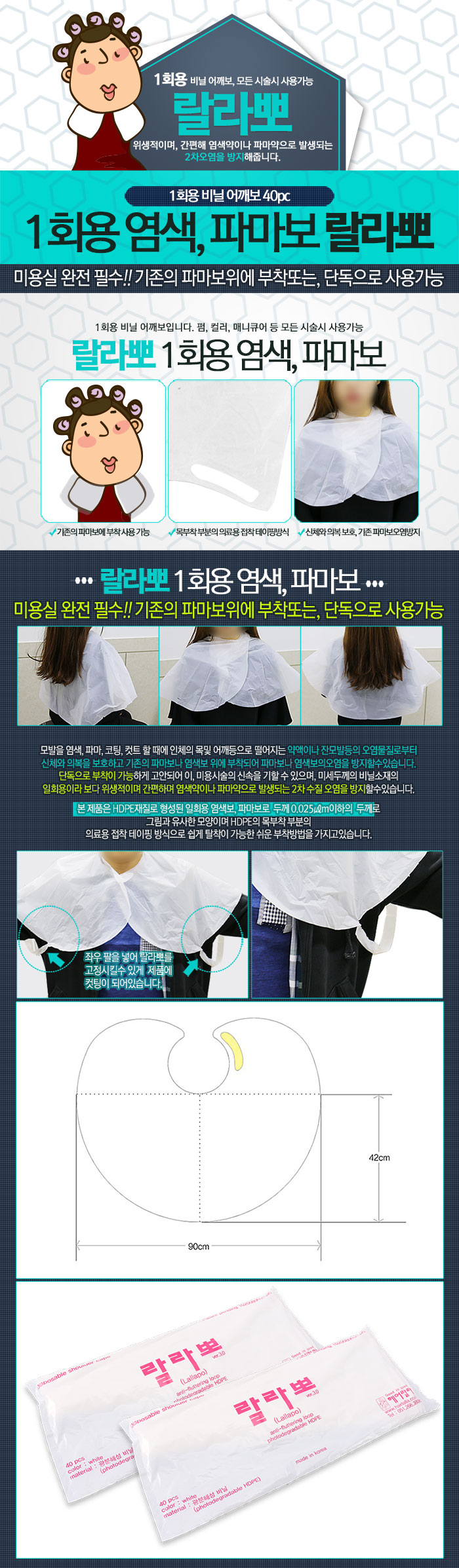 | [헤어랄라] [헤어랄라] 랄라뽀 (일회용파마보 / 일회용염색보) 낱개40개입 1셋트(1봉) | |