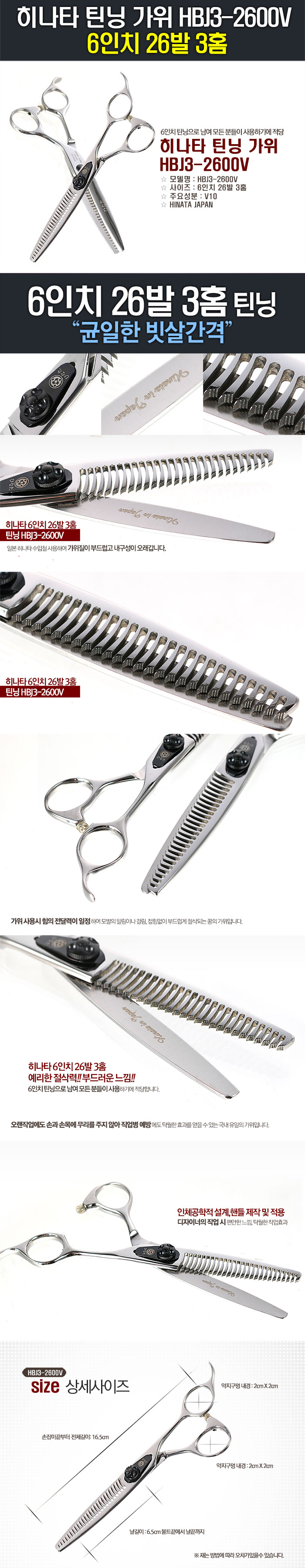 | [히나타] [히나타] 히나타 6인치 26발 3홈 틴닝 가위 (쓰리홈가위) HBJ3-2600V | |