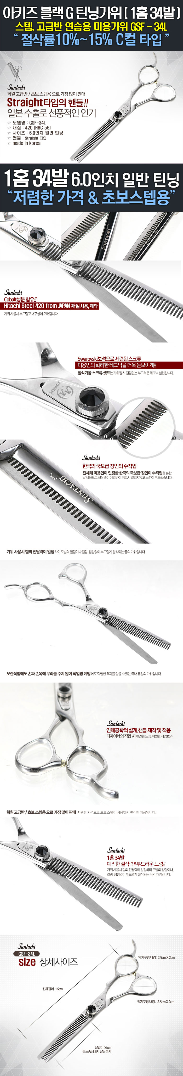 | [썬타치] [썬타치] 아키즈 전문가용 35발 틴닝 가위 GSF-34L | |