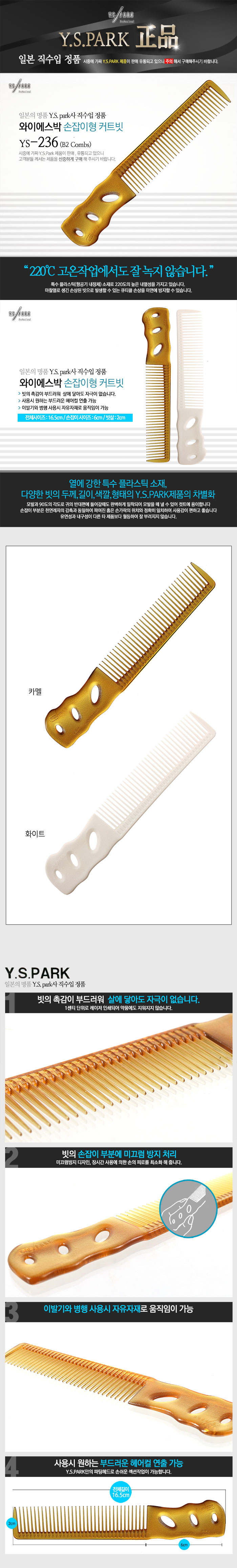 | [Y.S.PARK] [Y.S.PARK] 와이에스박 손잡이형 커트빗 (B2 Combs) YS-236 카멜 | |