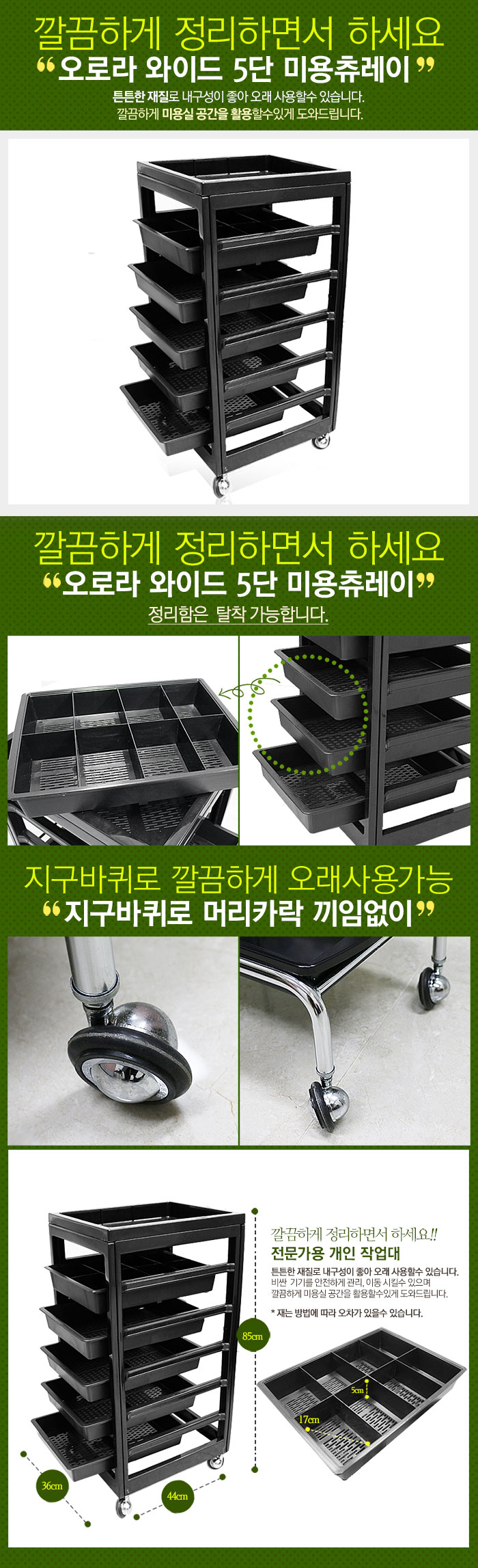 | [오로라] [미용카트] 오로라 와이드 5단 미용 커트 츄레이 (지구형바퀴) | |