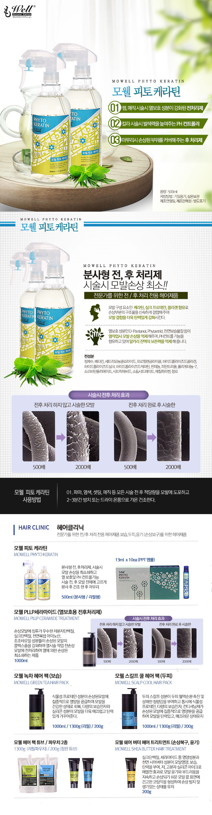 | [사용방법] - 파마, 염색, 셋팅, 매직 등 모든 시술 전 후 적당량을 모발에 도포하고 2~3분간 방치 또는 드라이 온풍으로 가온 건조한다. |