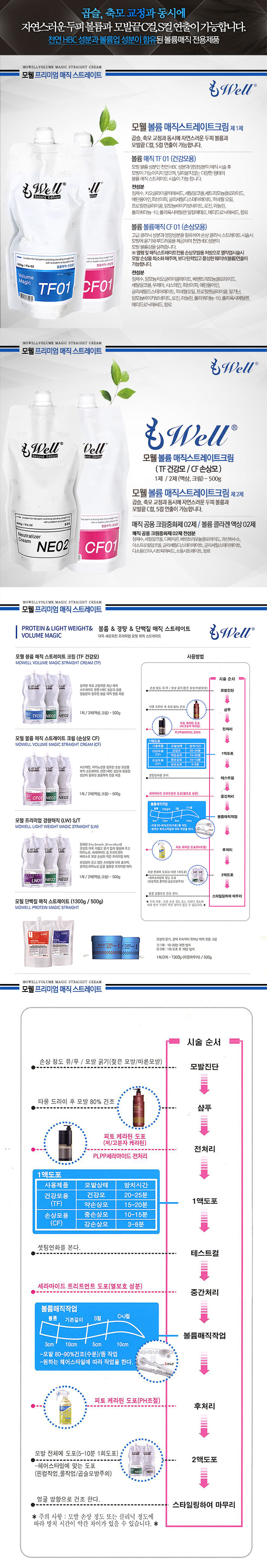 | [제품의특징] - 모발 볼륨 성분인 천연 HBC 성분과 영양성분이 매직 시술 후 모발이 가늘어지지 않으며, - 달라붙지않는 다양한 형태의 볼륨 매직 스트레이트 시술이 가능 합니다. - 건강모 : pH 9.30 / 알칼리도: 6.10 - 손상모: pH 9.05 / 알칼리도: 3.12 - 경 량: pH 9.30 / 알칼리도: 2.25 - 모웰 프리미엄 매직펌제는 모든 모발에 사용이 가능하고 시술후 윤기와 탄력이 매우 좋은 고급 매직펌제 입니다. |