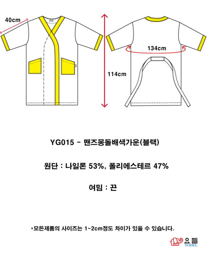 | [요들] [요들가운] 요들 맨즈몽돌 배색 가운 YG015 블랙 | |
