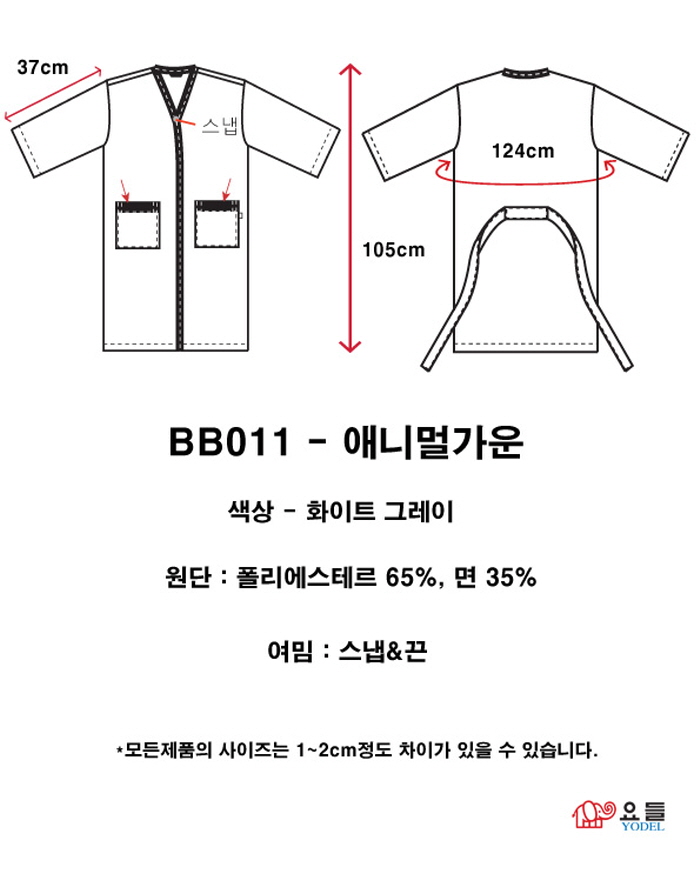 | [요들] [요들가운] 요들 애니멀 솔리드 가운 BB011 화이트그레이 | |