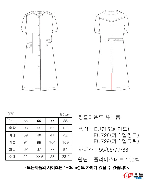 | [요들] [요들가운] 요들 핑클 라운드 (피부미용가운) | |