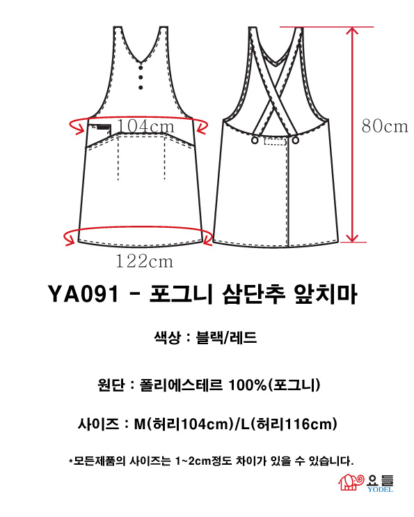 | [요들] [요들가운] 요들 포그니 삼단추 앞치마 YA091 레드 | |