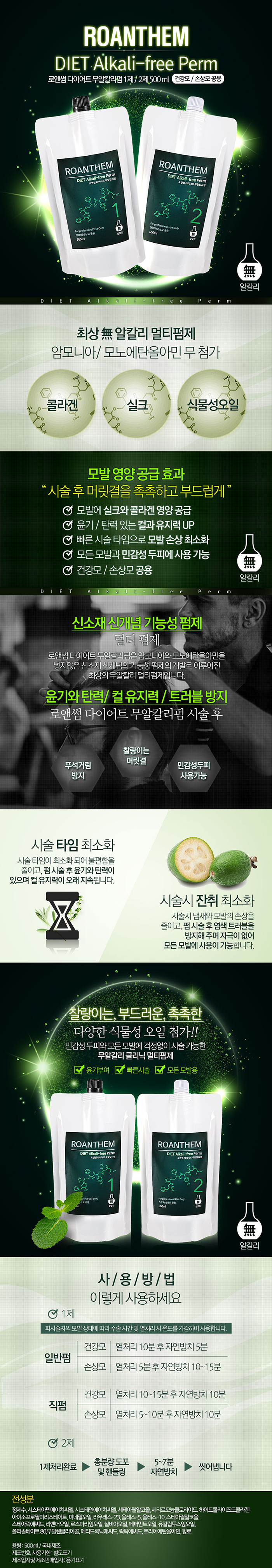 | [일반펌,직펌사용] 로앤썬다이어트 무알칼리 펌은 암모니아와 모노에탄올아민(MEA)을 넣지 않은 신소재 신개념의 기능성 펌 [pH: 8.6 ~ 8.9][소박스 7개 / 대박스 14개입] 낱개 구매가능 | |