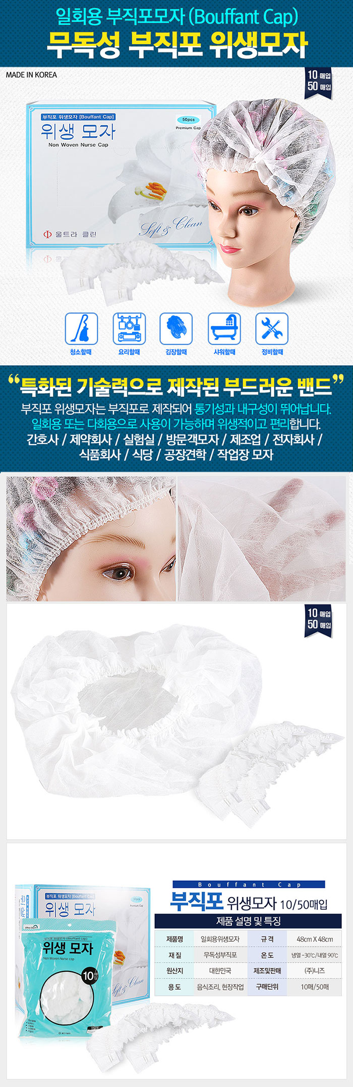| [미용잡화] [하나로] 울트라 클린 비닐캡 (면부직포 모자) 50장1박스 | |