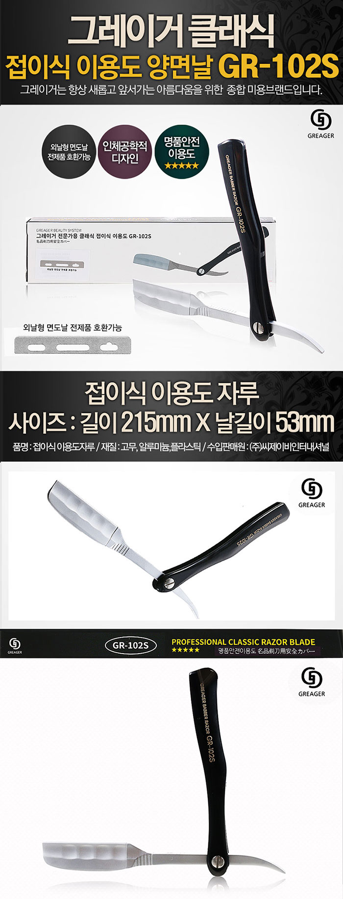 | [면도날 별도판매] 215mm × 53mm ([도루코] 바버 브레이드 이용도 BB20 호환) | |