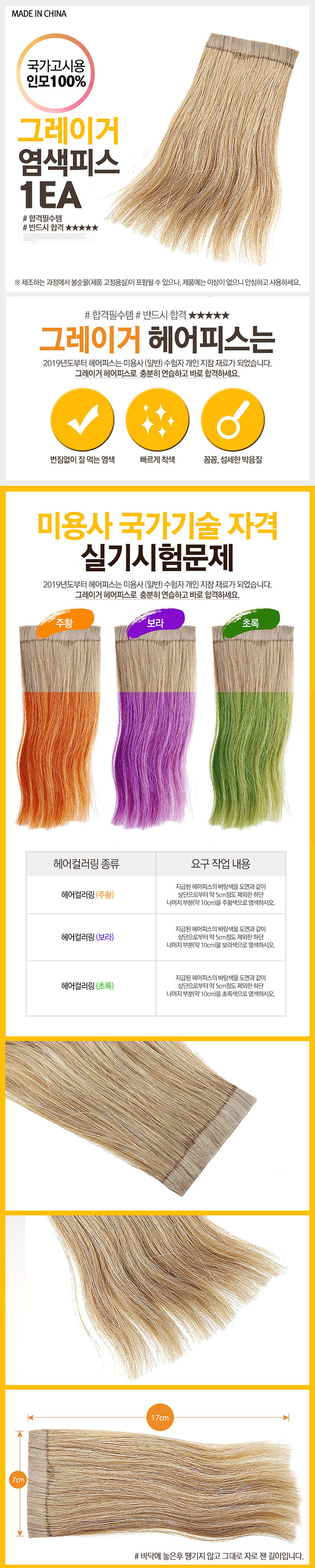 [제품의특징] - 2019년도 부터 헤어피스는 미용사(일반) 수험자 개인 지참 재료가 되었습니다. |