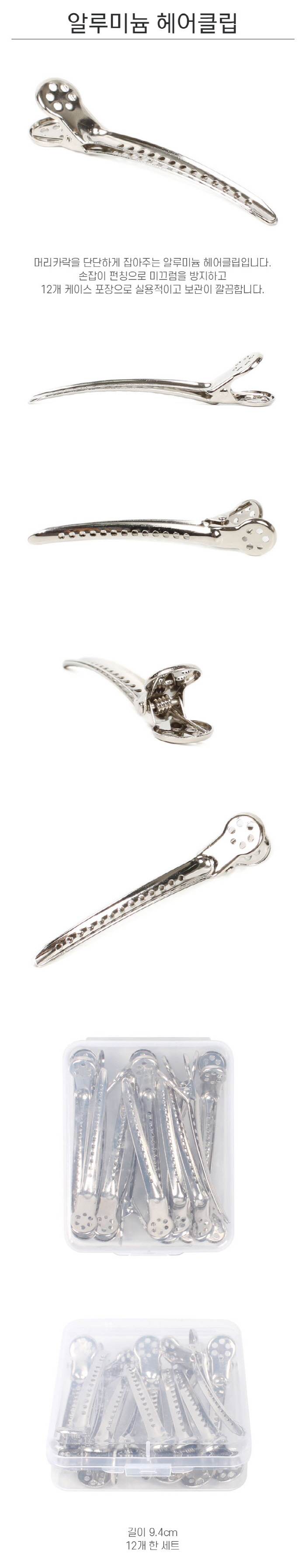| ■ 헤어 알루미늄 헤어 클립 - 머리카락을 단단하게 잡아주는 알루미늄 헤어클립입니다. - 손잡이 펀칭으로 미끄러움을 방지하고 12개 케이스 포장으로 실용적이고 보관이 깔끔합니다. |