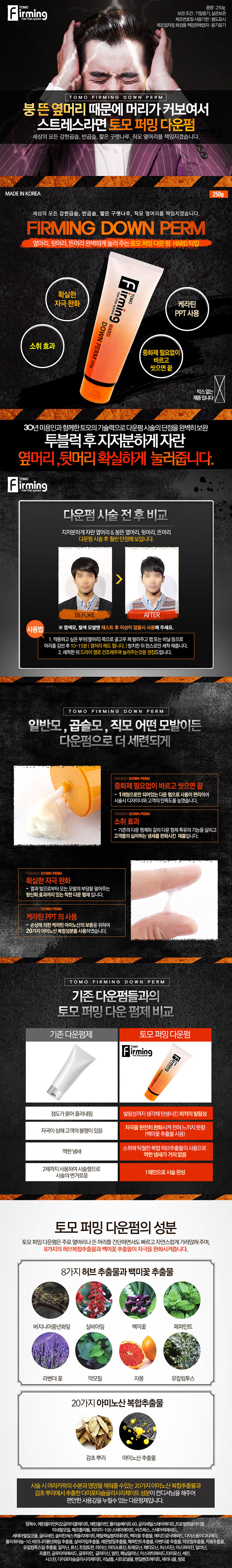| ◆[Original 토모정품] 토모 퍼밍 다운펌은 주로 옆머리나 뜬머리를 간단하면서도 빠르고 자연스럽게 가라앚혀 준다. [pH: 9.0~ 9.4][소박스10개 / 대박스40개입] 낱개 구매가능 | |