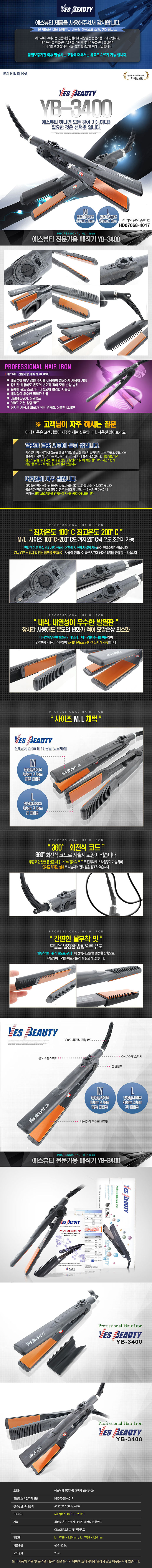 | [예스뷰티] [예스뷰티] 헤어 전문가용 매직기 YB-3400(M) | |
