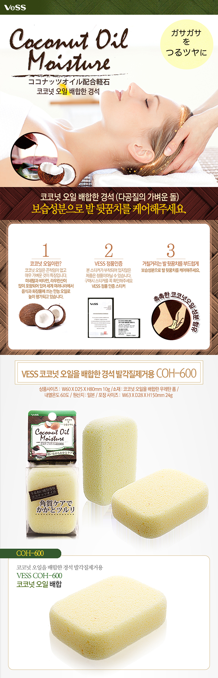 | [VESS] [VESS] 베스 코코넛 오일 배합 발각질 제거용 돌 COH-600 | |
