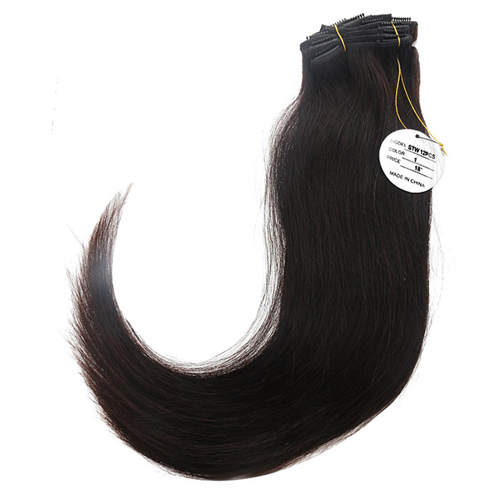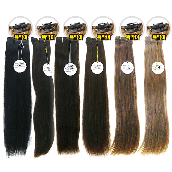 | [붙임머리 - 헤어피스] [헤어피스] 하나비 실키 붙임머리 똑딱이 헤어피스18인치(인모100%) 12묶음 1셋트 (1번 블랙) | |