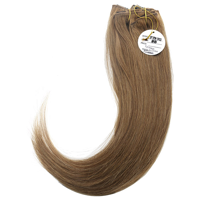 | [붙임머리 - 헤어피스] [헤어피스] 하나비 실키 붙임머리 똑딱이 헤어피스18인치(인모100%) 12묶음 1셋트 (8번 밝은갈색) | |