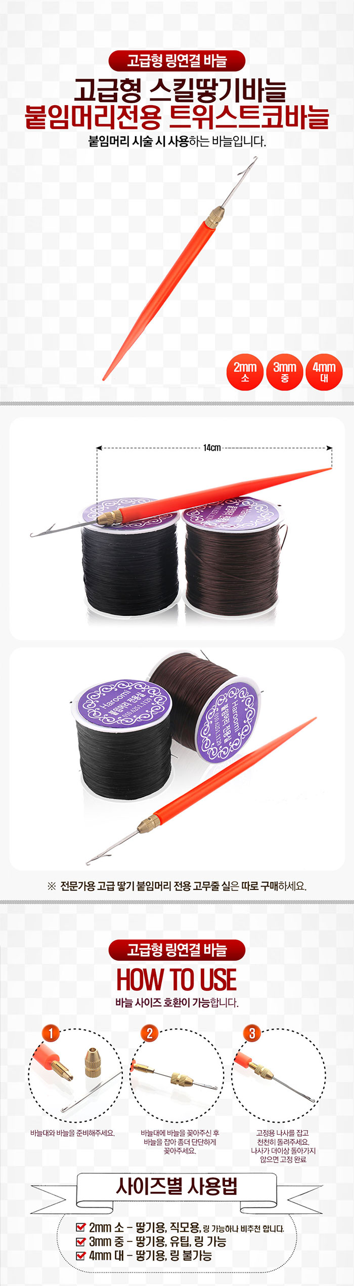 | 붙임머리를 붙일 때 사용하는 코바늘입니다. 손에 딱 맞는 사이즈로 되어 있습니다. | |