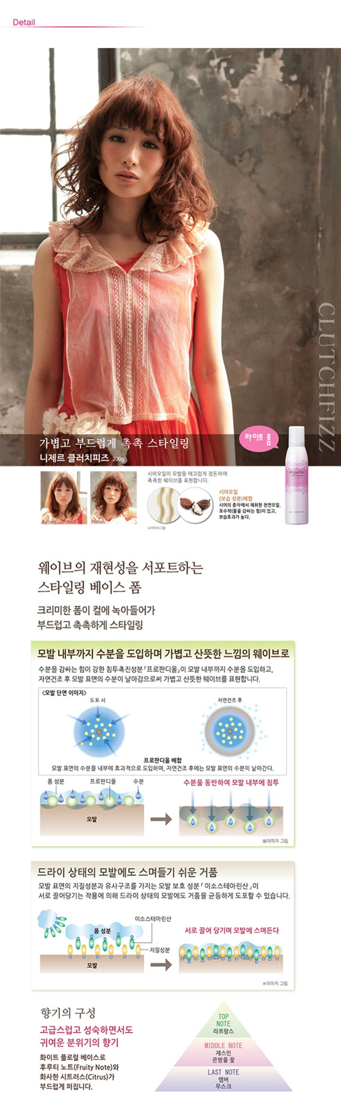 | 1. 폼을 모발 표면에 골고루 도포 - 폼을 손바닥에 펼처, 모발 표면 부터 쥐어가듯 바르고 모발 안쪽도 쥐어가면서 바릅니다. 2. 자연 건조 후 풀어서 마무리 - 자연건조 후 밑에서 부터 손을 넣어 흔들면서 러프하게 풀고, 손가락을 모다발을 흐트리면서 마무리합니다. |