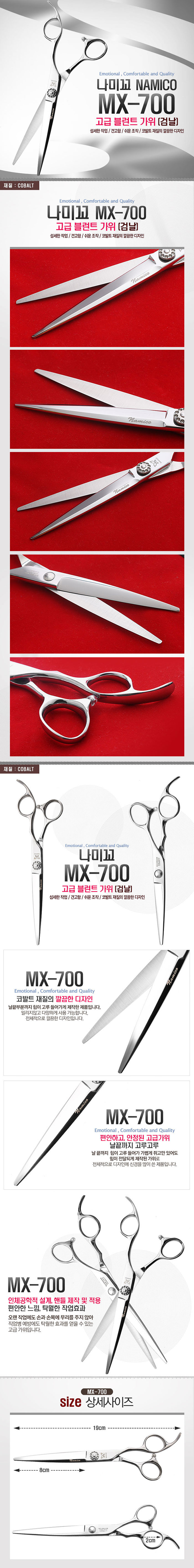 | [나미코] [NAMIKO] 나미코 전문가용 검날 낙타형 7인치 블런트 가위 MX-700 | |