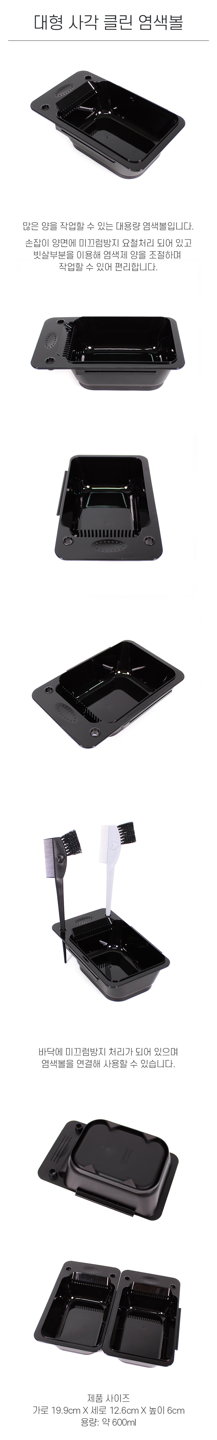 | [사각 대용량 빗살 염색볼] 사이즈 가로 :19.9cm 세로 : 12.6Cm 높이 : 6cm 용량 : 600ml | |