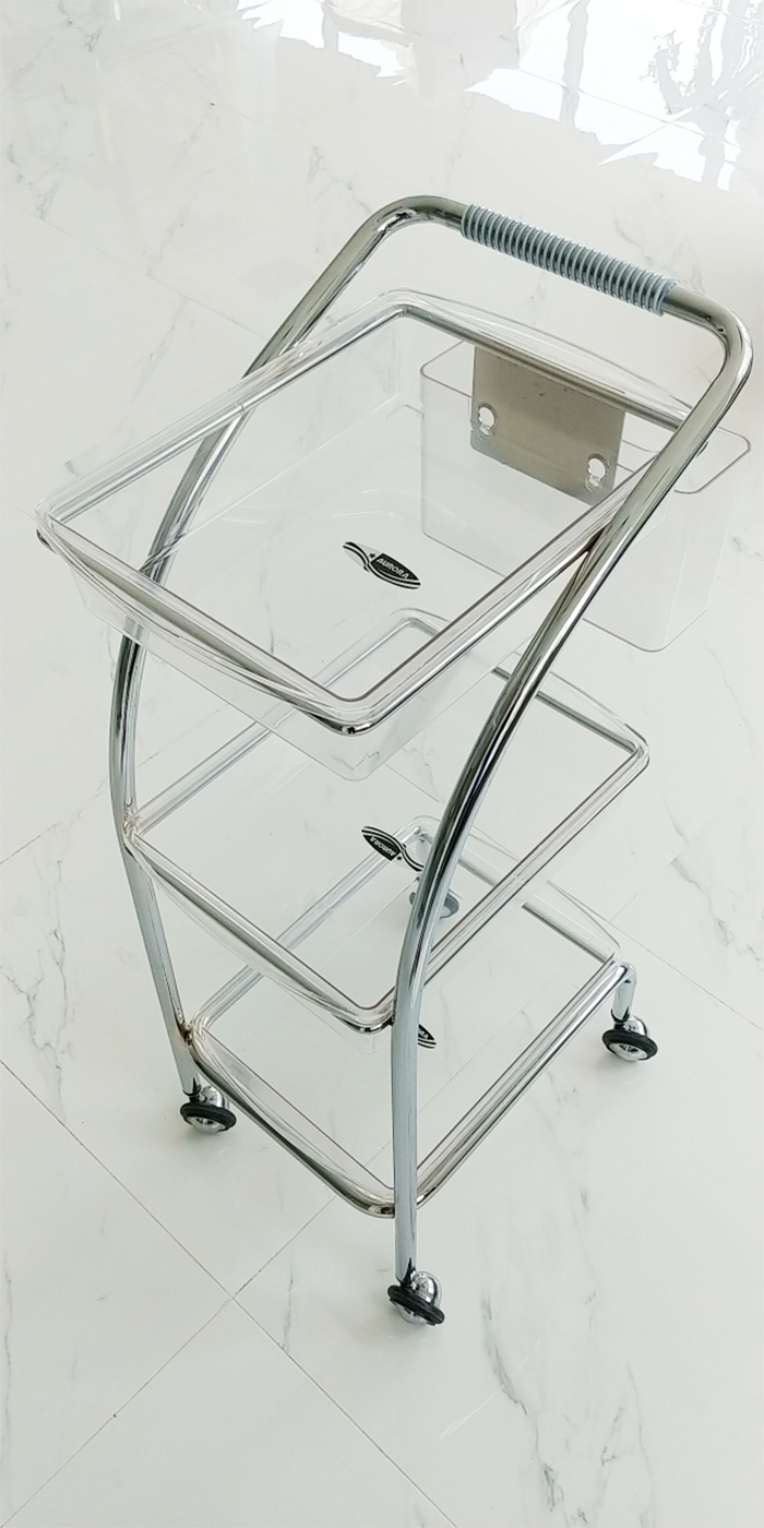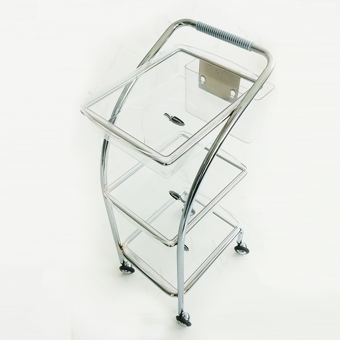 | [오로라] [미용카트] 오로라 뉴 고급 3단 투명 커트 츄레이 A3 (미용세트대:스프레이꽂이용) | |